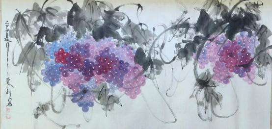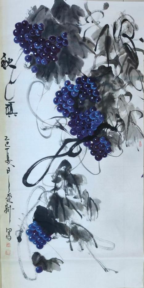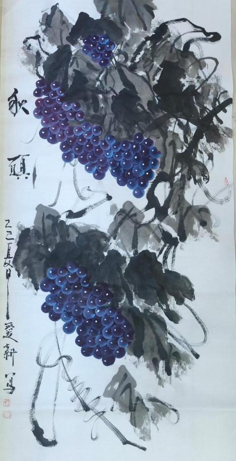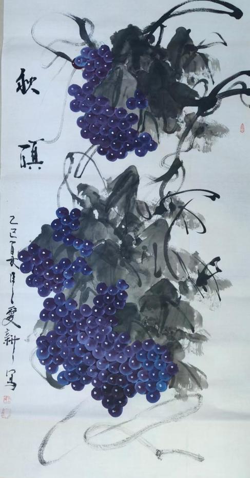 王爱新,号秋硕,斋号:陇竹草堂,甘肃敦煌人,国家一级美术师。中国美术家协会会员。1959 年出生,自幼酷爱书画艺术,师从著名书画家沈鹏(正举)先生,为国画大师娄师白先生、中国书协名誉主席沈鹏先生艺术再传人。其书法诸体兼工,尤擅行草。擅长画写意葡萄、人物花鸟。即扎根传统、熔碑铸帖,也不乏时代气息与精神书画作品先后荣获文化部、中国文联举办的《中华世纪之光》中国书画大展优秀奖、中法建交55 周年大型书画艺术展银奖、作品被法国书画家联合总会收藏、在 2018 年追梦人全国书画大赛中荣获二等奖等。2018 年北京国际文博会“宣和·至臻”书画邀请展荣获“最佳网络人气奖” 、2019 年入选名人数据库,同年被公益在线等爱心组织授予”“爱心书画家”荣誉称号、2019 年 12 月其国画作品《硕果》在中国教育电视台组织的公益拍卖会上拍卖善款捐献中国教育电视台 2020 春晚并颁发爱心功勋章。2020 年度公众评选活动中荣获“德艺双馨著名艺术家”冠军。 现为:敦煌藏宝斋文化旅游发展有限责任公司总经理、北京宣和书画艺术研究院副院长兼敦煌写生创作基地主任,北京正举沈鹏书画院敦煌艺术创作中心主任,北京师白艺术研究会会员、敦煌佛学书画院理事、民盟敦煌画院画家、敦煌市美术家协会会员。
