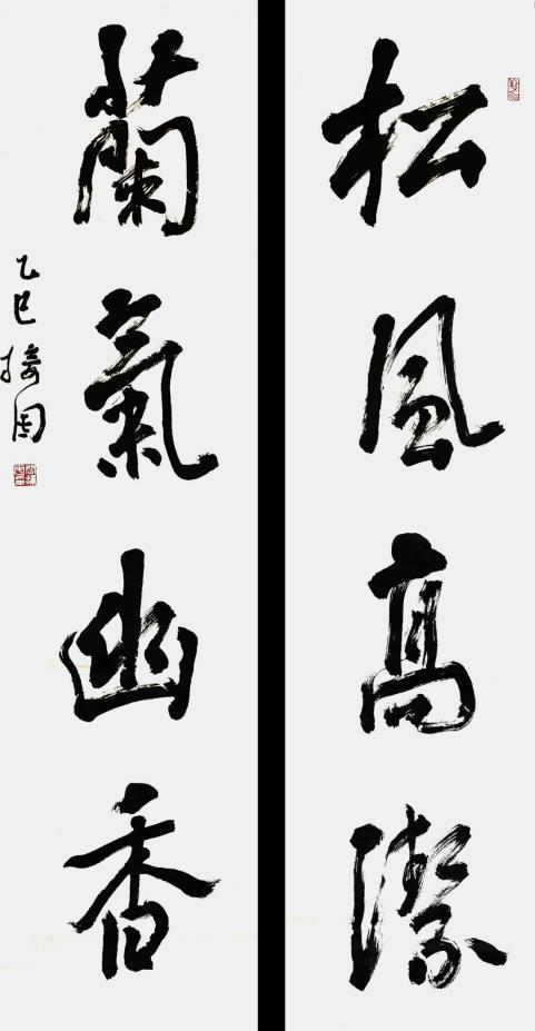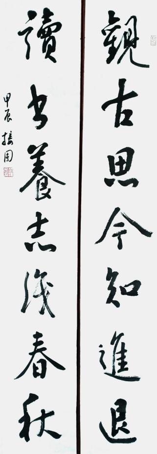 又见闫接囤先生创作的诸件楹联书法作品,皆有书以载道的文化格局。这些楹联拥有见素抱朴的笔墨精神,传统文人书法的风骨落笔可见。同时笔墨塑造又有机地融入现代文化气息,让人在欣赏的过程中,不仅能够感受到中华文化的博大精深,更能够领略到他对笔墨当随时代的独特见解和深度思考。闫接囤先生的楹联书法作品,不仅是一种艺术创作,更是一种文化传承,蕴含着丰富的文化内涵和深刻的思想启示,让人在欣赏的过程中,不仅可以感受到中华文化的博大精深,更能够从中汲取到一种精神力量,一种对生活的启示和为人处事的教诲。这是他的书法作品可以入驻万家屏障,成为弘扬传统文化之优品的重要原因。