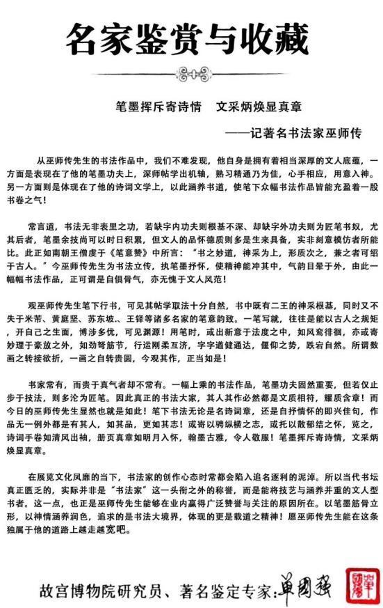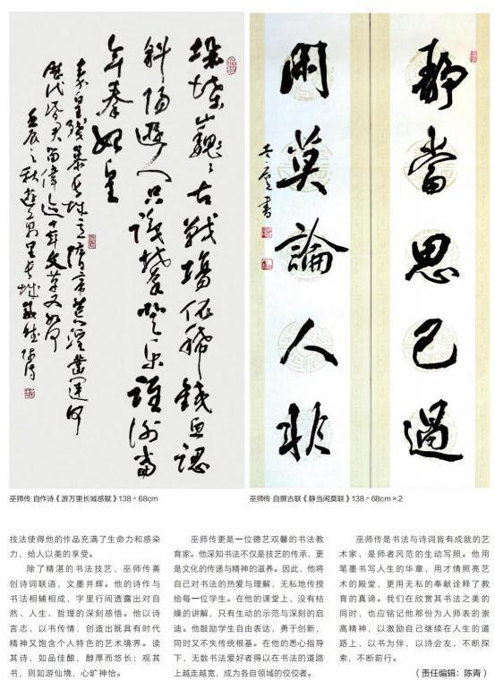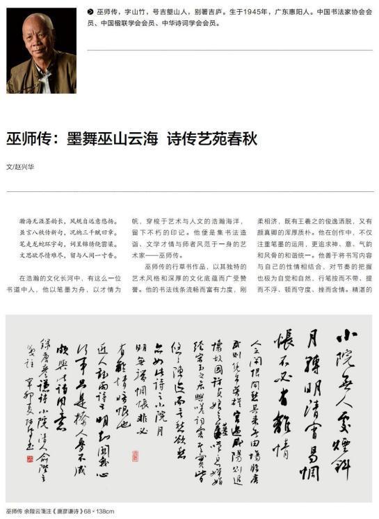 巫师传在诗香墨韵中行走半个多世纪,诗入化境,书臻神功,诗书合璧,成为当今书坛颇具影响力的书法家。