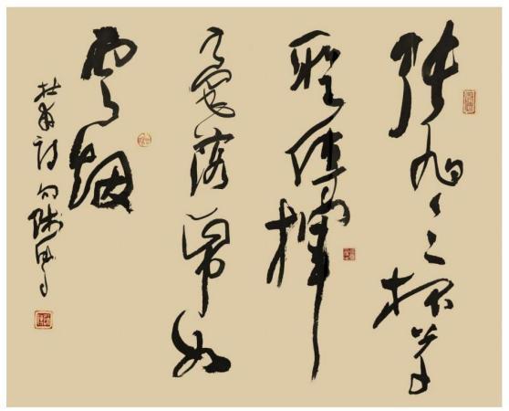 巫师传的书法,起于诗心,源于墨韵,集众家之长,自成一体。笔起而游龙舞,笔落而疾风生,风樯阵马、刚柔相济,刚则如铁画,婉则若银钩,轻描时似云升雾涌,卷舒处如林花盛开,凤翥龙蟠、沉稳凝重而又流畅豁达,质妍相生,尽显自然之妙,具有较高的书法艺术造诣。