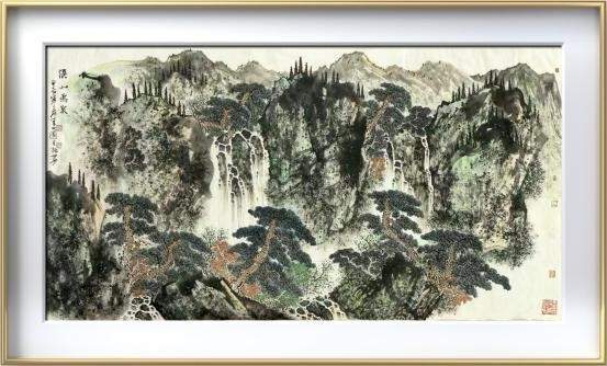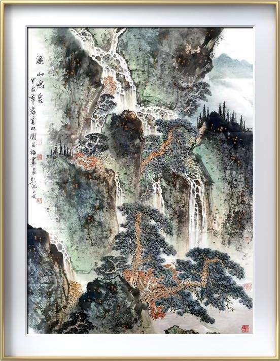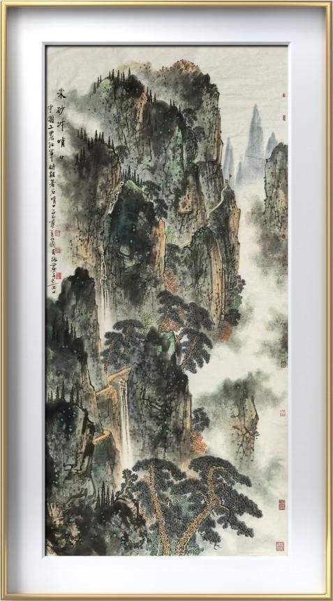 《溪山鸣泉之三》尺寸:150*100cm,纸本设色。