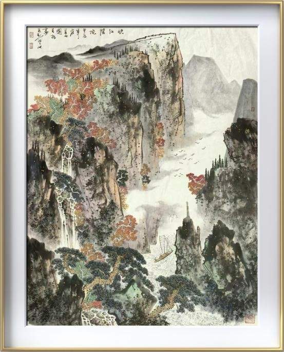 《巫峡清秋》尺寸:140*70cm,纸本设色。