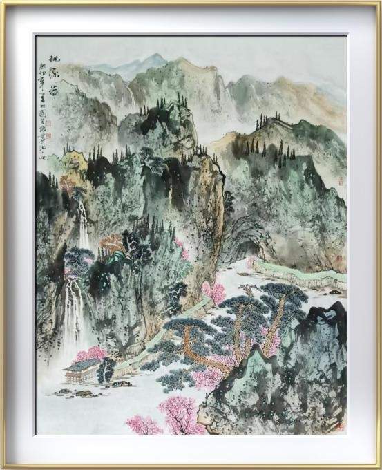 《溪山鸣泉之五》尺寸:68*45cm,纸本设色。
