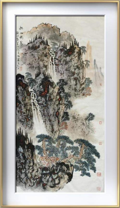 《秋山鸣泉》尺寸:140*80cm,纸本设色。