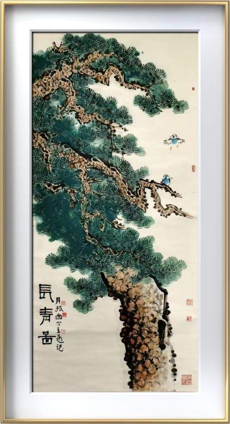 《长青图》尺寸:240*100cm,纸本设色。