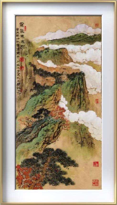《紫气东来图》尺寸:110*45cm,纸本设色。