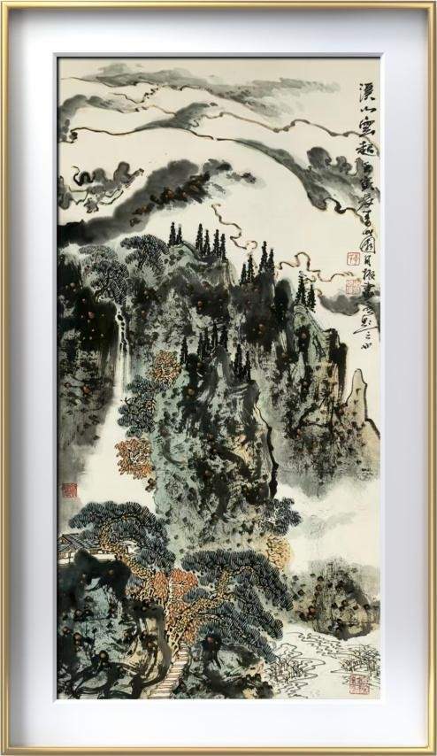 《峡江云起》尺寸:200*180cm,纸本设色。