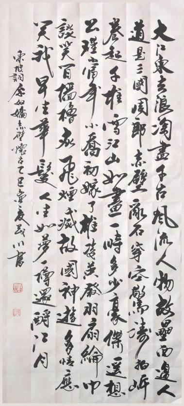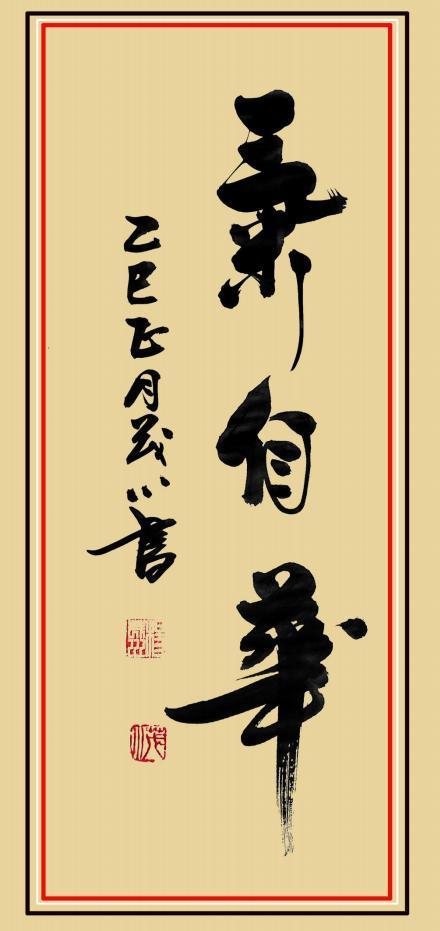 书法早年由颜真卿楷书入手,后转行草,遍临汉隶、魏碑及诸家法贴。笔法独特、线条老辣、气韵生动、刚柔相济、呈一派阳刚之气。