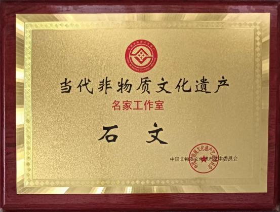 中国非物质文化遗产艺术委员会颁发石文名家工作室。