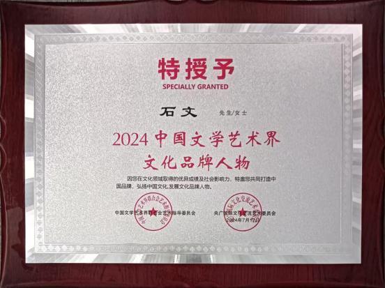 2020 年 8 月由中国通俗文艺研究会成立“中国艺术名家石文工作室”。
