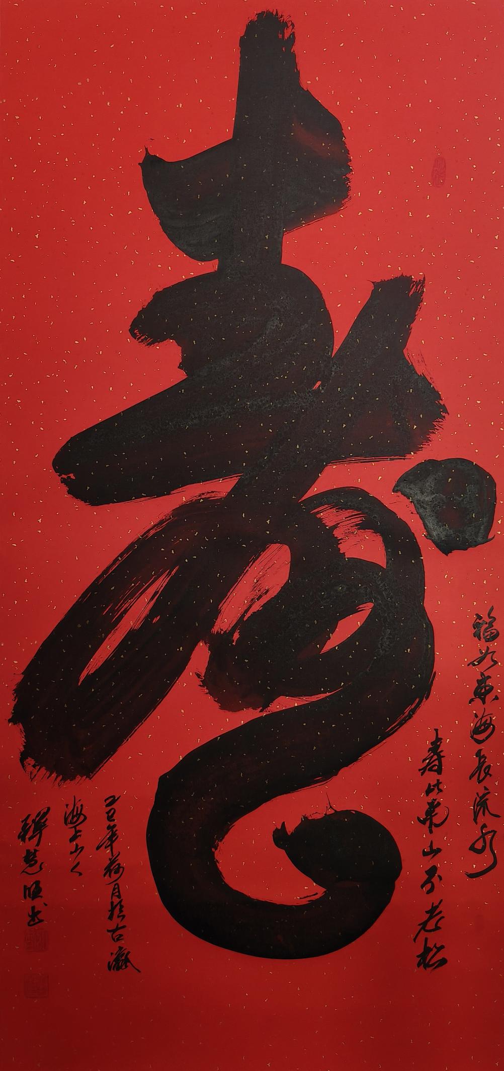 释慧旺法师,字弘智,博整亚洲艺术人才研究中心“研究员”,中国传统文化促进会-民族文化产业委员会委员。1960年4月8日出生于上海,后被养父母从上海孤儿院抱到河北省,养大成人。1999年八月法师在河北省邯郸市定国寺礼悟君法师出家。2002年在安徽省凤阳县龙兴寺求受三坛大戒2016年任武安市寿宁寺住持。2017年当选武安市佛教协会副会长2022年华夏巨匠书画院特聘名誉院长。2022年央广国际文化交流艺术委员会副主席。2022年世纪大采风书画院常务副院长观为:中央国家机关书法家协会理事,国家一级书法师,中国国际书画研究院会员,中国书画家协会会员,陶瓷书画艺术委员会顾问,武安市书协会员,孔子美术馆签约艺术家,中国国际报告文学研究会国学文化传承工作委员会理事,中国国际报告文学研究会国学义化传工作委员会副会长、中国通俗文艺研究会会员,被授予“中国艺术名家“荣誉称号。《世界艺术家联合总会》理事会常务副会长,全国非物质文化遗产项目传承人,中国易协会研习基地筹委会会长(上海)。世界非物质文化遗产研究院特邀院上联合国气候大会形象大使,全球十大风云人物,亚洲国际青年电影节评审团主席,影响世界十大金牌艺术家,全国人民公术家信用管理中心书画艺术委员会主席,中国红色文化研究会党史教育工作委员会会员,国际名人百科艺委会主席,常以泼墨度众生善于书法示禅心:慧时法师酷爱书法艺术,潜心研习诸书家之法度,博买众家之长,历数十载,终自成一家。博采众家之长,艺术风格空明严净,自然酒脱,不拘泥于形式,无媚俗及矫柔造作之感。所涉及内容揭示了天地字宙之真常,自然统一之和谐,处处体现了真心本心之运用,法师现已创作了不少作品将禅学和书法融为一体,广结善缘,践行佛陀无缘大慈、同体大悲的精神,常以笔墨做佛事,用书法的形式传播真、善、美。无论是研究书法,还是佛学,都是怀着一颗无我利他的心而为弘扬中国传统文化不懈努力。他的作品更多的是传递一种人文关怀。