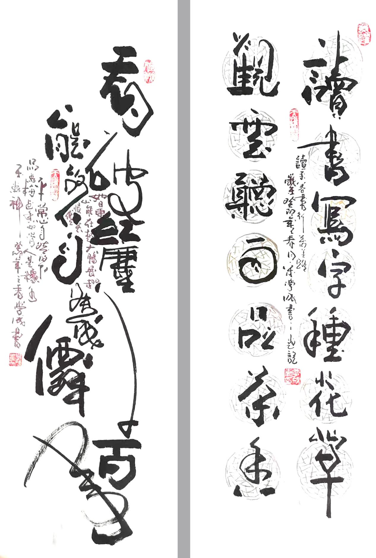作者从小受祖父影响,7 岁开始临帖习画(楷书以柳)颜体为根,隶书综(曹全碑)(乙瑛碑书)以甲骨文等行书则师。(赵孟頫)兼学二王。多年来刻苦揣摩,兼学并取之长,形成了自己的声韵之大雅,飘逸以不俗之美感。