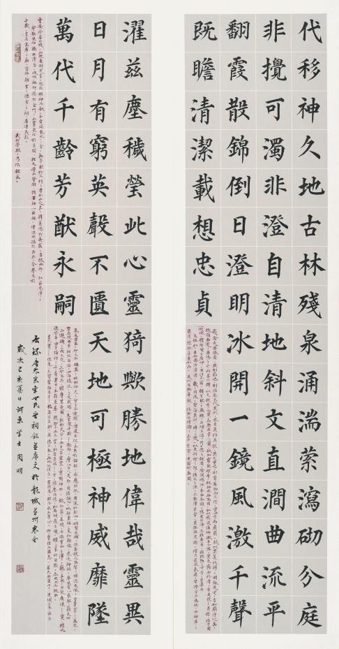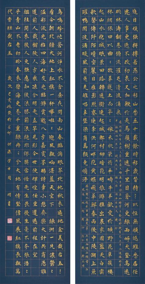 我和周明先生并没有过直接的联系和交流,只是书法界圈子实在不大,秉着创新、交流、传承,合作过几次,对其作品记忆犹新。这也让我好奇,到底是一位怎样的书家?才能写得如此上乘之作。观其作品,在继承传统的基础上融入了自己的手法,周明的字不热闹,不晔众取宠,字里行间还保留着文人书法的意境和追求,其作品整体都很规整、恬静,也很讲究“法度”与“传承”。如今,书法的多样化,很多人像在“耍把式”,而周明他是在写字。字如其人,看他的字,便知他这个人。我无意吹捧周明,更没有见过本人,但他和我一样只是热爱书法,更执着于书法的科学与公道。固然,周明有待于更进一步和提高,但对于那些没有练几天字就人云亦云的“书法家”来说,已经是望尘莫及了。从运笔、用墨、布局、章法等来看,其作品严谨而不呆板,秀色自显,已具有名家风范且能为其他书家创作提供可凭借的有益启示。望其能继续传承中国书法之美!
