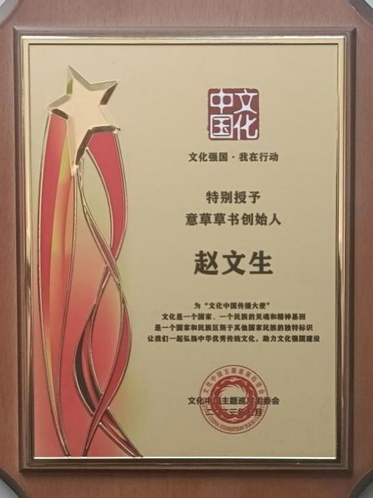 先后获得“世界和平艺术贡献者”奖。获西班牙皇家艺术协会、毕加索故宫博物院、巴塞罗那艺术学院联合颁发的“优秀导师”奖。获国际金牌艺术家及中国艺术首届金马奖。2025 达芬奇国际艺术奖金奖。艺术中的诺贝尔奖获得者。“金砖艺术家”。胡润全球艺术金笔奖。全国“五个一工程奖”。“孔子奖章艺术顾问”。被人民日报授予“新时代书画艺术先锋人物”。草书得到范曾、薛永年教授极高的评价。先后有多本教材、专集,合集在全国发行。多次走进央视并登上笔尖下的中国栏目。作品分别在北京机场候机厅,高铁站,首都地铁展播,影响国内外。被授予当代最具收藏和艺术价值的书画家。先后被中宣部授予“时代楷模——笔尖下的中国赵文生”;被文联授予“全国艺术劳动模范”称号。被文旅部授予“共和国艺术楷模”荣誉。被中书协,中美协等授予“人民书画家”称号。同年被央广国际文化交流艺委会授予“中华文化品牌′人物”。2023 年”文化中国传播大使”特别授予<意草书法创始人>。长卷《岳阳楼记》被专家评审团授予国宝并被国宝档案存档。2024 年受邀中国教育电视台录制“欢乐中国年”节目。2025 年国宝长卷<岳阳楼记>等二幅作品被推介到阿拉伯国家。被中视文化产业聘为“书法评论家”。