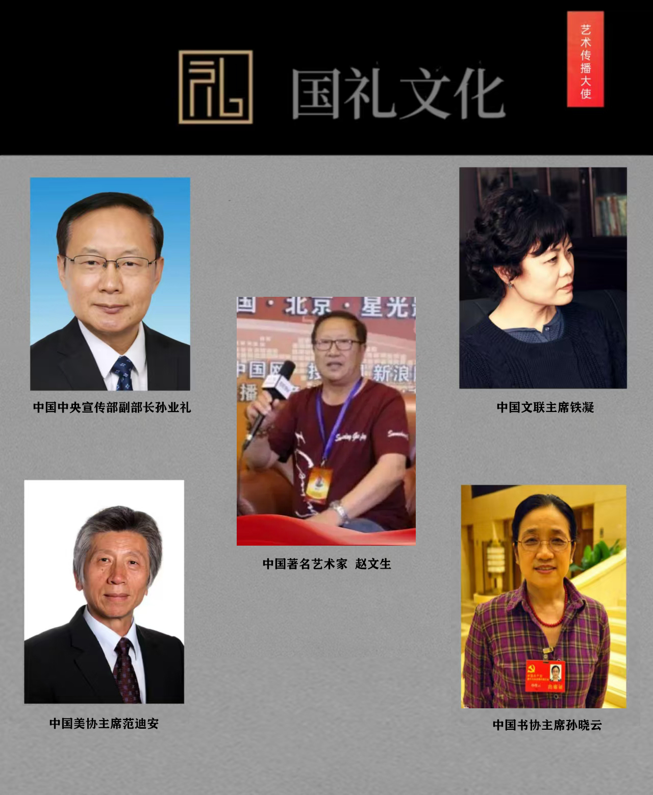 赵文生,原文化部高级书法家。亚太国际经济文化融合发展中心名誉会长。央广国际文化交流艺术委员会副主席。央媒文化艺术导师,顾问。中华卫视艺术总监。世界非物质文化遗产研究院副院长。世纪大采风书画院副院长。央广文旅国际发展中心客座教授。中国东方文化研究会社会艺委会艺术顾问。中视文化产业发展中心艺术顾问。亚洲国际青年电影节评审团主席。亚洲文化首席艺术主席。中国书画交易中心艺委会主席。中国楹联学会书法艺术研究会理事、特聘专家。“中国国礼艺术大师”。
