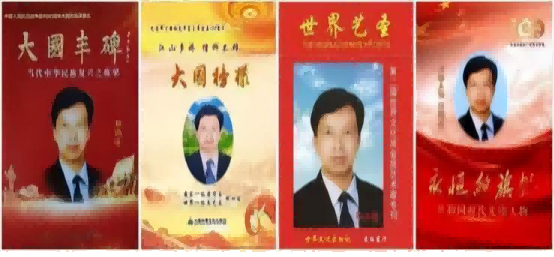 时代楷模、人民功勋、祖国先锋、世界名人,科技之星、当代文学之星、中华爱国之星、中华民族之星、重大理论创新之星,国学大师、科学名家、中国当代名家、国家一级国学家、共和国红色文艺家。邮票人物、新闻人物、先锋人物、风云人物、环球人物、旗帜人物、杰出理论创新人物、中国新长城人物、首届中国正能量风云人物、当代世界功勋人物,世界文化名人、世界一级文艺家、世界艺圣、世界杰出文化圣贤。