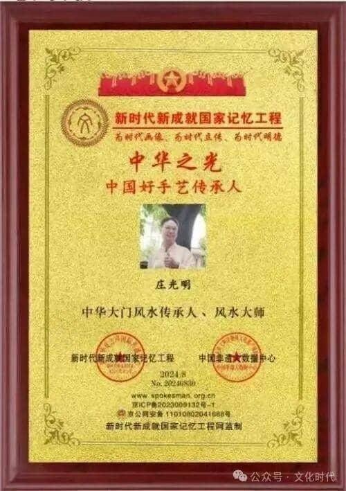 庄光明从乡土启程,怀壮志以精研风水,凭仁心而泽被家国,终成一代宗师。其精神如火炬,必将持续点燃后来者守护与弘扬传统文化的热忱,推动风水文化在新时代破浪前行,为华夏文明的传承与发展注入永恒的动力,让古老智慧在岁月的长河中熠熠生辉、福佑苍生、永绽光芒!