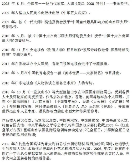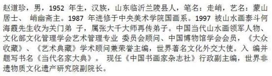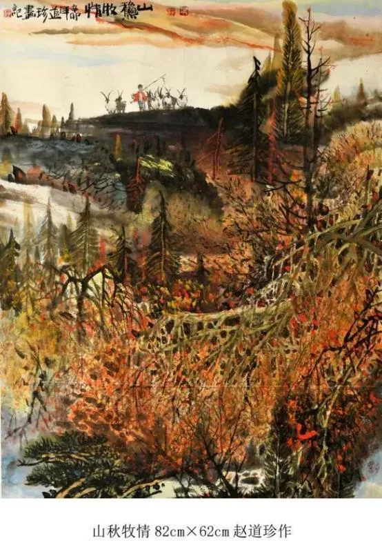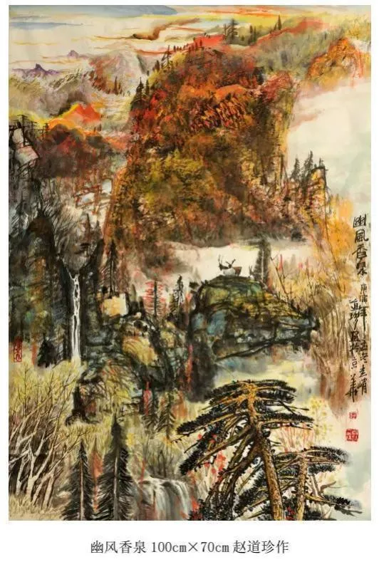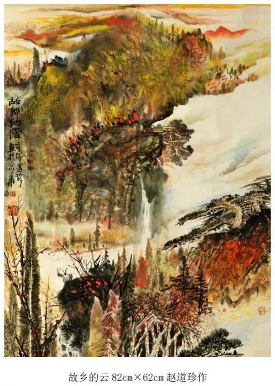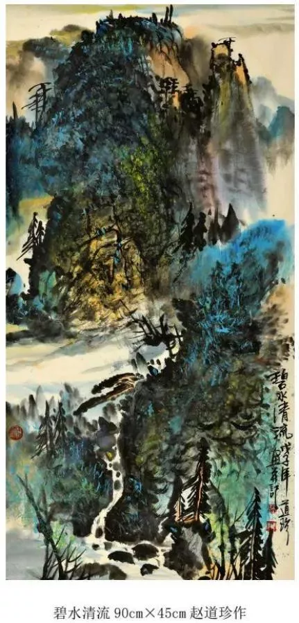 “赵道珍来自沂蒙老区,深入大自然变化,由于自身与自然默化, 笔下吞吐自如,是由于内在兴趣的来之,欲从古本中得知,大有希望,可喜。"的极高评价。 受恩师何海霞大师言传身教,赵道珍在传统上创新,恩师何海霞先生曾指出赵道珍的作品融 入了白雪石、黄宾虹、陆俨少等大师的艺术风格”。 画坛泰斗吴冠中先生评其赵道珍作品:“画境内涵、体现自然万物精深博大之丈,艺术 语言、克隆自然万物气韵生动之象”。