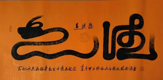 龙道书法是邓银海先生开创的一种书法文化艺术形式,他的作品以龙写书,以书弘道,乃龙道书法。