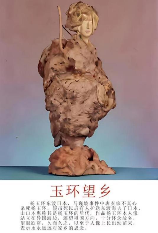 三、 文化为脉:从地域叙事到时代精神 在南阳汉画馆的灵感启迪下,李有光将楚文化的浪漫基因注入根雕创作。《屈原行吟》以伏牛山老藤根为材,屈原的冠冕是根瘤自然形成的凸起,衣袂的褶皱借根材纵裂的纹理表现,而“路漫漫其修远”的忧思,则通过根材底部一道深壑般的疤结来隐喻。这件作品被南阳历史文献记载为“用树根书写的楚辞”,其地域文化符号的转化能力,让中原文明的厚重感在根雕中获得新生。 他的创作更承载着时代记忆。2008 年汶川地震后,他耗时三年创作《生命树》,以四川震区搜集的青冈树根为原料,将断裂的根体化作托起孩童的手掌,树心空洞处嵌入铜铸的和平鸽——这种“残缺中孕育希望”的表达,使自然灾难的创伤记忆转化为生命力量的赞歌。该作品在国家博物馆展出时,被《人民日报》评论为“根雕艺术介入公共叙事的典范”。