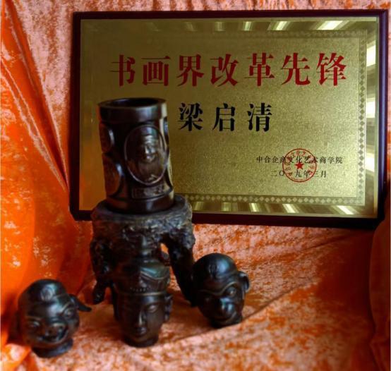 2016 年中华民族历代名圣清风廉政雕塑系列,陈兰彬、林召棠、孔子墨宝笔筒参加中国广东民间工艺博览会山花奖获银奖。