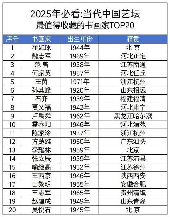 在浩瀚的当代艺坛星河中,哪些艺术家的笔墨真正经得起时光淘洗与市场淬炼?当资本眼光与专业审美交汇,当历史厚度与创新活力碰撞,一批兼具学术高度与市场潜力的“潜力股”艺术家正浮出水面——他们以深厚的传统根基为底色,以鲜明的个人风格为标识,在当代中国书画的多元探索中开辟出独特路径。经权威机构深度市场调研:二十位极具前瞻价值的书画家脱颖而出:他们的作品既承载着东方美学的当代转化,又暗含艺术市场的增长密码;既在学术圈层引发深度讨论,更在收藏市场持续释放热度。这些创作者,既是传统笔墨的守护者,亦是时代审美的破局者,其作品如同蓄势待发的艺术明珠,未来升值空间广阔,正成为投资者与资深藏家共同瞩目的焦点。