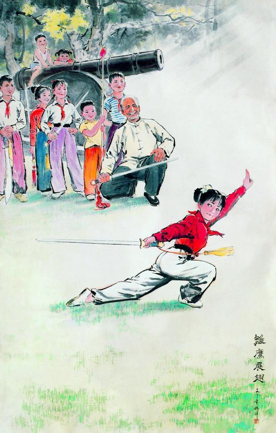 新课堂(宣纸.水墨 设色)182cmx97cm 鸥洋 1974 年