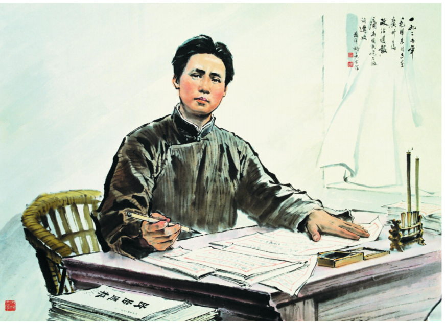激扬文字[宣纸.水墨设色]97cmx131cm 杨之光.鸥洋合作 1973 年[中国美术馆藏]