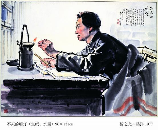 不灭的明灯(宣纸.水墨设色)96.5cmx131cm杨之光.鸥洋合作 1977 年