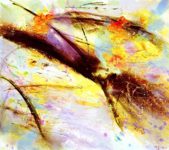 ……鸥洋从 80 年代中期至今,步步探索,千折百回以其开放进取的观念,东方式自由创造的现代意识,选择中国文人画审美“意象”为油画求变的核心,以“气韵生动”为意象创造的切人点,吸收印象派的油画色彩,融入中国水墨画的笔情墨趣,寻求语言风格的个性化、独创性,从而开拓属于自已,也属于时代进程的油画东方之路。……