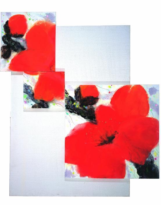 大卉糸列一怒放(麻布.砂胶.油彩)115cmx180cm 2007 年