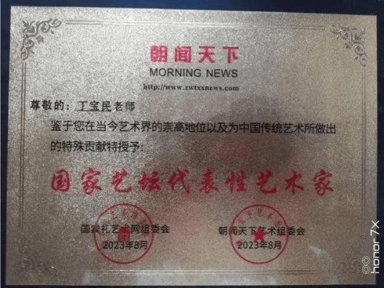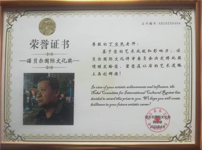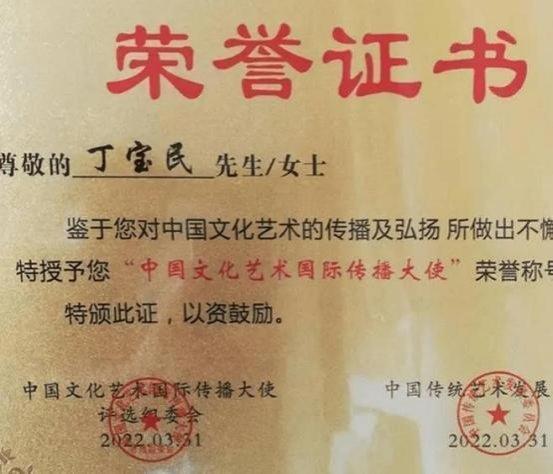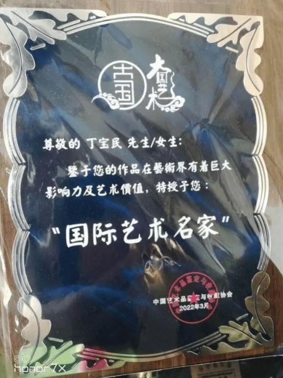 艺术的进步离不开坚苦和不懈的努力,只有坚苦奋斗和不断的磨励自己才能有更大进步。取故人之长补自身之短,只有传承才能发展,对祖国五千年传统文化的文明发展史深耕不辍。以匠心守护中华文脉, 以创新推动祖团传统文化传承与发展,多年来以精湛绝伦的技艺传承、创作出众多的优秀作品。积极参与书画文化的传播,让古老文化走进现代生活,并把中國传统文化传播到世界各地,让世界更多的了解中华民族的五千年文化的文明史和发展史。他的绘画作品是有着独特的审美价值,画中尽显纯熟、精湛的笔墨功底,色彩丰富,结构严谨,写实与写意相接合。他绘制的关羽造象、武财神作品被有关國家收藏;“精忠贯日月、義氣满乾坤”他始终贯穿了中华民族自古至今的一种民族文化和民族魂,传承到今天就是一种强大的爱國主义精神。他所绘制的孔子造象也是代表中华民族文化的精神灵魂。传承中华五千年文明文化,不能没有我们的祖先“至聖先师”,“萬世师表”这是中华文化的根和魂。被國家孔子学院、子曰美术馆授予子曰美术馆院士、丁宝民工作室并发牌匾,被国家鉴宝 和收藏协会授予“国际艺术名家”光荣称号,和“最具收藏价值的艺术名家”。