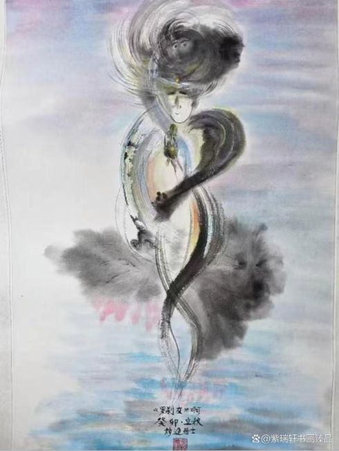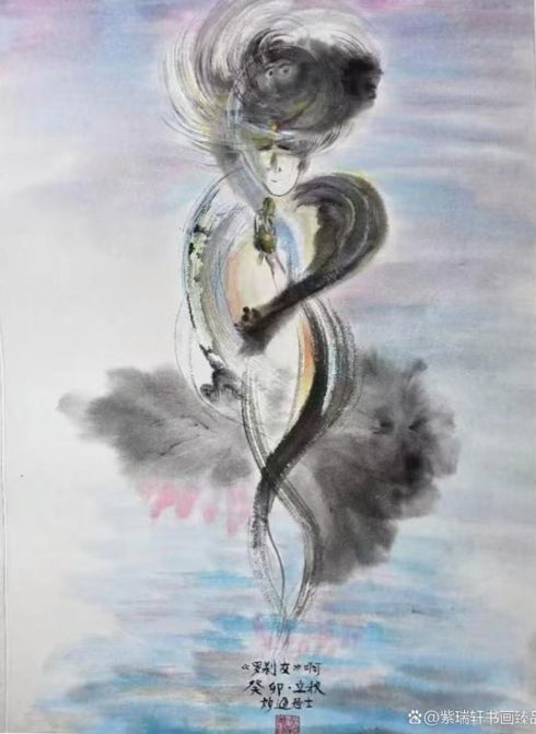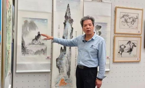 最引发观众讨论的,是灵感源自刀郎歌曲《罗刹海市》的《罗刹女》。画面中,一位女子身着华服,面容却扭曲如鬼魅,背景以浓墨泼洒出混沌的色块,间或点缀金粉,看似华丽,实则荒诞。“《罗刹海市》讲的是美丑颠倒的荒诞世界,我想用画笔延续这种批判。”黄梓涛说,画中“罗刹女”既是对“无才却上位”“虚伪做作”之人的隐喻,更是对当代社会“价值判断扭曲”的警示。他特别强调,画面的“生动”并非靠细节堆砌,而是通过墨色的对比(浓墨的压抑与金粉的浮华)、线条的张力(衣纹的刚硬与面容的扭曲)来传递情绪。“艺术不能只讲‘美’,更要讲‘真’。我希望观者在看到这幅画时,能停下来想一想:我们是否也在某些时候,成了自己讨厌的‘罗刹女’?”这种将传统水墨与当代议题结合的创作,让不少日本年轻观众产生共鸣。大学生小林惠美说:“虽然文化背景不同,但对真善美的追求是共通的。黄老师的画让我明白,传统艺术也可以很‘现代’。”