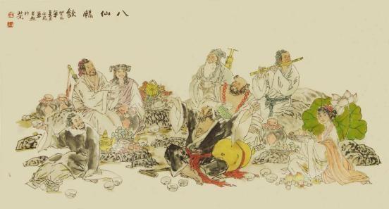 八仙畅飲图 365X147cm