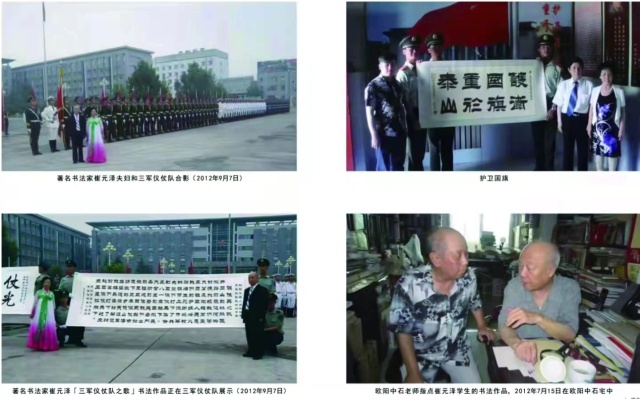 崔体书法创始人,人民艺术家,共和国功勋艺术家,艺术劳动模范。清华大学名誉教授;北京大学书法系巜中国艺术教育基础》终身博士生导师;中国人民大学终身书法荣誉教授,中国人民大学书法院终身名誉院长;首都师范大学博士生导师;中国艺术研究院院士。联合國金砖文化功勋奖:中囯十大囯粹书法代表人物:靳尚谊艺术工作室院士。俄罗斯皇家艺术学院名誉院士:中俄文化艺术交流形象大使;美国哈佛艺术学院名誉院士;美国斯坦福大学名誉院士;英国大英博物馆.中国首席书画顾问;英国皇家艺术学院院长,中国区书法系院长,英国皇家艺术学院院士;英国伦敦艺术大学名誉院士;英国剑桥艺术学院院士;美国哥伦比亚大学名誉院长,名誉院士;加拿大维多利亚皇家艺术学院名誉院士;英国牛津艺术学院博士生导师,英国牛津艺术学院终身名誉院士;荷兰皇家学院学术顾问;韩国首尔艺术大学艺术院士:中法建交艺术形象大使;法国皇家艺术学院名誉院士;巴黎奥运会艺术形象大使;英国爱丁堡艺术学院博士生导师;瑞典皇家艺术学院名誉院士;《滴水穿石》六体合一,和谐主体书法作品法国卢浮宫收藏;中国老子,孔子艺术学院客座教授。联合国艺术中心颁发:《2022年中国艺术百花奖组委会:《滴水穿石》书法作品被评选为《金奖》。福布斯《十大华人艺术形象大使》;美国时代周刊《全球艺术人物形象大使》;中国奥运会《2021年艺术形象大使》;奥运首席代表艺术家;盛世华章,献礼亚运《艺术形象大使》;《2021年世界和平艺术形象大使》;金砖五国《国际艺术形象大使》;《首届张择端艺术成就奖》;《中朝友谊艺术形象大使》。国内外上百个媒体重点推出专题报导。崔元泽艺术生涯六十年如一日,国内外贡献出必生的精力。做一个合格的共产党员。把中囯人的志气,骨气,底气传播全世界!