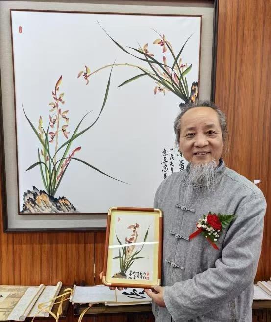 艺术成就:自幼酷爱武术与绘画艺术,尤擅画兰,自成一体、独具一格。他独创写兰艺术“九叶分”技法与写意工笔画兰草范式,更开创性地将兰花题材从文人墨客的书斋案头,推向适配厅堂展陈的宏大气象。兰花素有“笔墨之祖”之称,“十年画竹百年画兰”道尽创作之难,历代能突破桎梏者凤毛麟角,而先生的诸项创新,不仅为中国兰画艺术开辟全新境界,更在中国画笔墨语言的当代创新中,具有划时代的标杆意义。