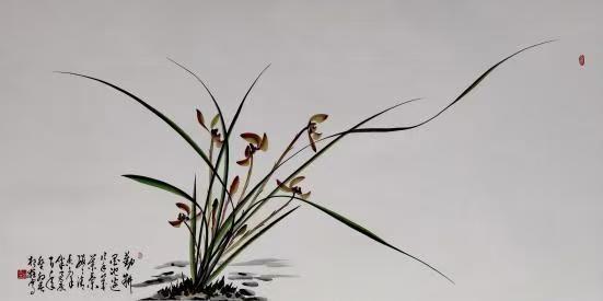 先生将工笔画的精致细腻与写意画的洗练洒脱熔于一炉,创造出“一笔双色,浑然天成”的写意工笔画兰独特技法。相较于传统工笔画,其作品更生动灵秀;既保留工笔的精微质感,又凸显写意的气韵神采,堪称兰画技法的突破性创举。