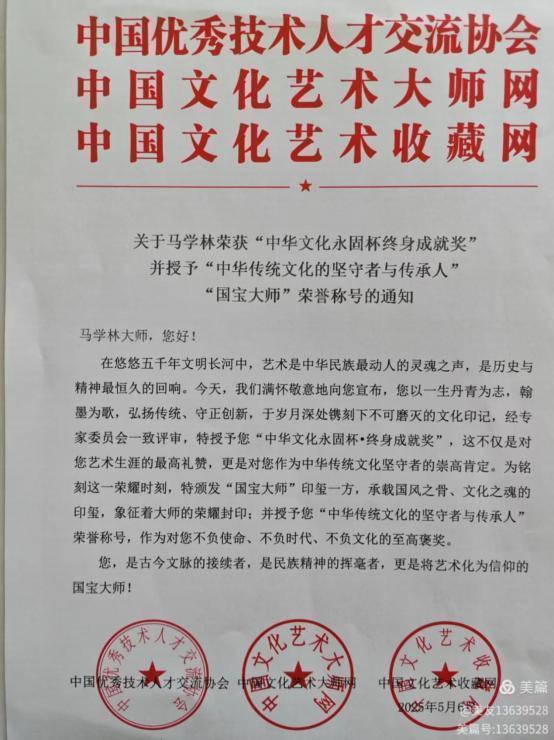 2025 年 10 月 31 日,应邀参加《首届海峡两岸暨港澳消费者保护法论坛》并作交流发言,论文入选),并有 20 首诗词、2 篇美篇、2 篇小年糕作品奉献。11月,获大国•大家艺术领军人物荣誉称号。(2025.11.20. 于银川)电话微信:18695158377。