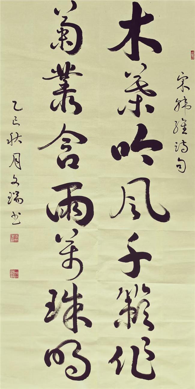 张文瑞的作品扎根传统而不泥古,注重笔墨意趣与情感表达的统一,尤其在小字行草与大字榜书之间皆能自如驾驭,体现出全面的艺术修养。其作品多次入选国家级、省级重要展览,并远赴法国巴黎、匈牙利布达佩斯、美国纽约、日本东京等国际舞台展出,逐步建立起跨文化的认可度。部分精品更被刻石、烧瓷,永久陈列于北京报国寺、山西太原古县城风景区等重要人文场所,进一步强化了其作品在公共艺术领域的能见度与学术地位。