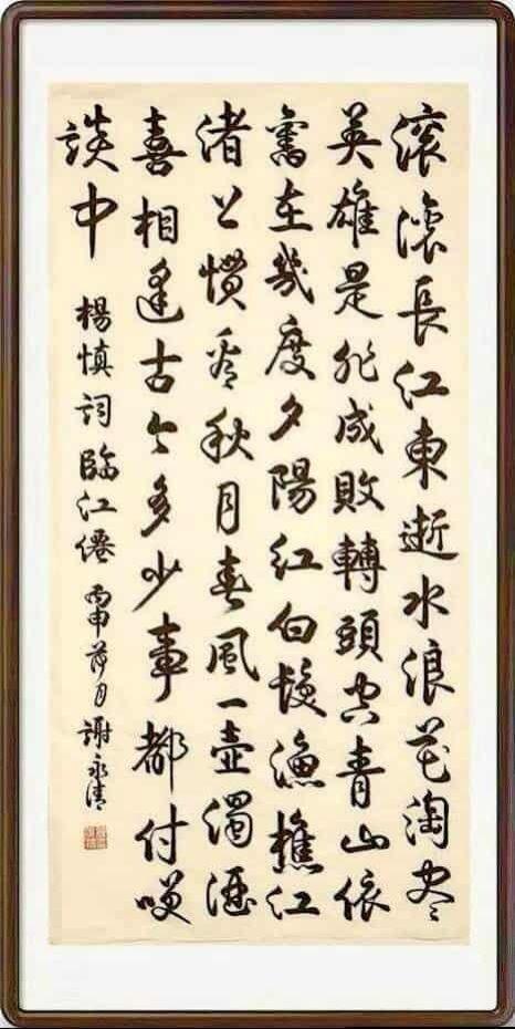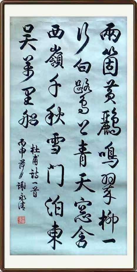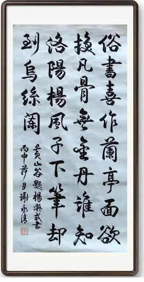 当代著名书法家谢永清先生自幼酷嗜书法,曾遍临历代名家碑帖,广集博釆,兼学并蓄,可谓是是观千剑而后识器,也正因此他将历代碑帖中的精粹转化成为自己的笔墨语言,从而形成了古典雅质、势欲飞舞、舒展流畅的个人书风。其作品于平淡清秀中见俊美,于端庄凝重中显功力,气度不凡,大雅上品。
