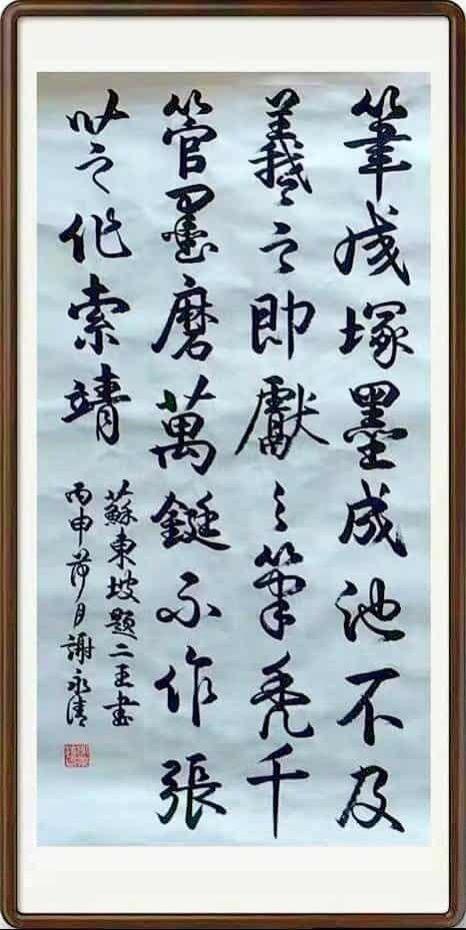 积健为雄谱华章,藏锋守拙见精神。谢永清先生能超然于当今书坛的名利之争,这就足见其是深得古人风骨。所言单从艺术角度来看,他的书法也早已是超越了"作品"的范畴,而是成为了笔墨当随时代的代表,是一种文人精神的象征,更是先生个人修养的生动写照。每一笔每一划,都蕴含着极其深厚的文化底蕴和学养积淀。先生堪称当代书坛的一股清流,他以纯粹的艺术追求超越了世俗功利——不慕虚名、不逐浮利,唯以笔墨寄怀、以作品立身。这般守正出新的艺术品格,正是浮躁时代最为难得的文人风骨,其作品所蕴含的静气与格调,已然成为当代书法艺术的重要标高。
