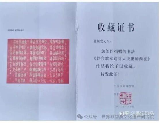 杜照安,1945年生,山东济南人,副处级干部。现为中国传统文化非遗传承人,央视书画频道签约艺术家,(国宾礼)特供书画艺术家,孔子奖章,艺术奖获得者,中国楹联学会会员,香港书法家协会会员,中国文艺协会理事,《人民日报社》人民美术家艺术委员会委员,中国文化金融发展联合会常务理事长,中国传统文化诗书画协会理事,中国国学书画院研究中心副会长,中国老年书画研究会会员,中国书画家联谊会新文艺群体书画家工作委员会会员,中国民族建筑研究会书画艺术工作委员会会员,世界华人书画名家协会终身会员,新时代大国领军人物,世界非物质文化遗产研究院副院长等。作品辞条先后入编《世界名人录》、《中国艺术百年》等200余部典籍、报纸、杂志、刊物,并获得多个荣誉称号。《中国百科》、《百度百科》、《美术百科》、《书画家百科》、《央视书画道》、《中国网》、《人民网》、《中华网》、《新网》、《凤凰网》、《今日头条》、《央媒文化视界》、《名人辞典》等数家国家主流媒体宣传报道。岑参诗《轮台歌奉送封大夫出师西征》被中国国家博物馆纳入收藏。书作“上善若水”被联合国秘书长潘基文收藏,书作“兰亭序”镌刻在《中国八达岭新长城》上,永久展示,永载史册,经中国文学艺术界联合会(文学评估中心)艺术品评估委员会严格审核认定,市场价格人民币为42000元/平方尺(至)60000元/平方尺。