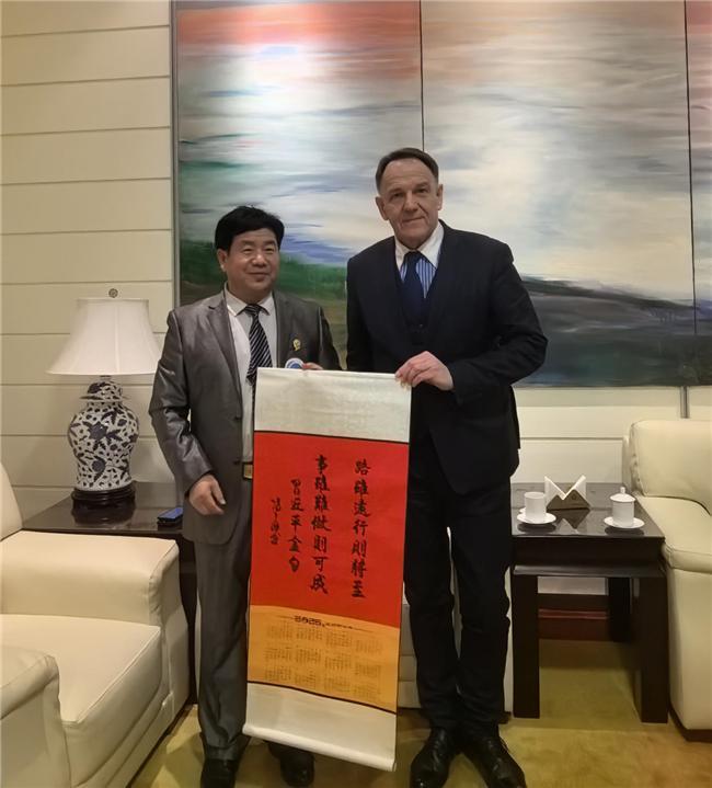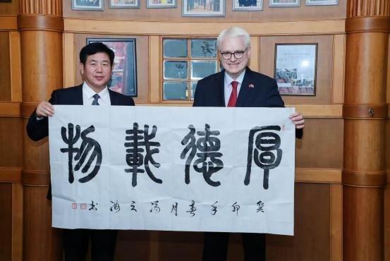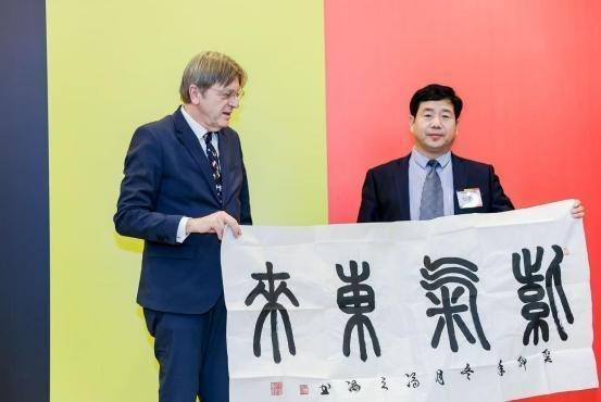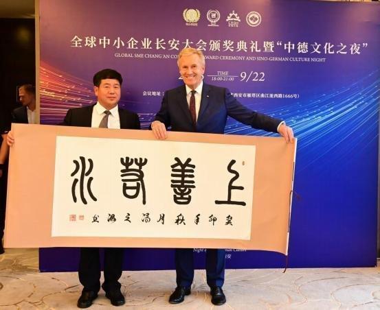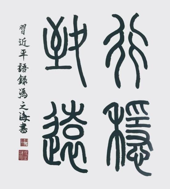 全球中小企业联盟主席德国联邦第十任总统,武尔夫的赞赏,并收藏了冯之海篆书《上善若水》:克罗地亚总统收藏书法作品《厚德载物》