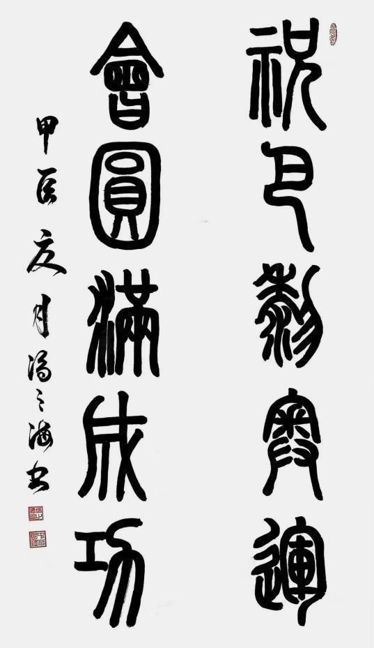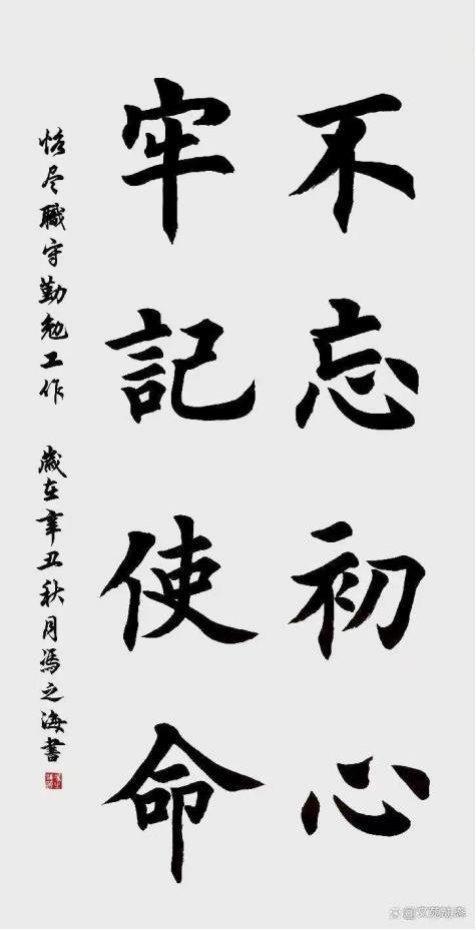 新时代,新气象,新征程,希望书法家以技巧练手,以文化练心,以笔墨作舟楫,自觉融入中华优秀文化,助推时代发展、社会进步,从这个伟大的时代中演绎出正大之气、高雅之趣、真挚之情,向着书法之巅不辍攀登,真正肩负起举旗帜、聚民心、育新人、兴文化、展形象的使命任务,为书法艺术在新时代焕发新的光彩,为建设社会主义现代化强国,为实现中华民族伟大复兴的中国梦做出自己的积极贡献。