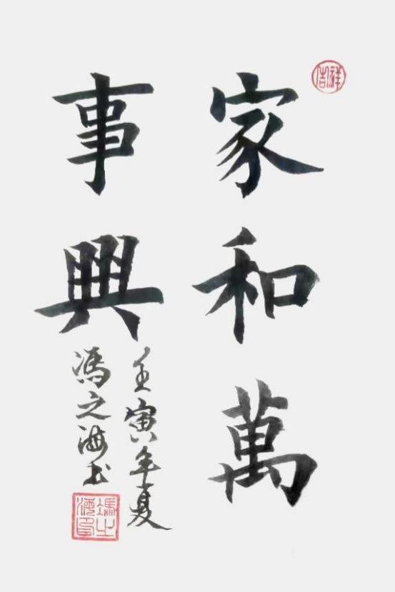 3、融汇贯通,做好书法研习的创新者。收藏是为了更好地传承和发展书法艺术,以收藏的书法经典作为支点给书法之修以根基支撑,让书法之习回归传统之道。对于书法的传承和发展,书法之修的第一要务是选择好适合自己的书帖,这点沈鹏先生也曾言明“选帖要视每个人的兴趣、个性、气质等来决定,不易强求一律。”也就是说,选择书帖一定不可人云亦云,随波逐流,一定要明确自己的喜好,想法,追求,然后再进行选择,同时还要在不断地研习过程中调整,找到更加适合自己的书帖,以求达到最佳的研习效果。我自己习书以古为法,溯源寻经,勤研不辍,悟道得成。我对“二王”及颜柳欧赵有深入研究的,对他们的书帖有数十载的临摹感悟,将欧体的挺拔、颜体的端庄、柳体的清秀、赵体的飘逸、“二王”的神妙,融冶于己之笔端,灌注于锋之毫芒。使自己的楷书古雅浑朴,圆润遒劲,古风醇厚,颇有意蕴。书写一定要注意用笔,要入笔真切,出笔能纵,笔法才能显得达观舒畅,我自己用笔中锋运畴,圆转藏出,写直笔如弓在弦上,钩捺出锋踢尖,如见闪电,精神足耀,气度赫赫。写折笔,融颜柳之特点一体,运笔暗转,提而迅折,斜面蓄劲,完完全全的折钗股。同时写楷书不是古板的死写,而是成竹在胸的落墨,笔意相联,浑然一体,上下非方整,左右非齐平,勒笔缓去急回,努笔直寓曲势,远离算子之状,让笔下之线条摇曳生姿!我研究以楷书为核全力攻写隶书,在隶书中融入颜柳的骨健体丰,以求用笔洒脱无拘,扎实纵越,穿插纵笔稳如泰山,结辍成篇盈盈飞动,展现出隶书的雄古风度,写出笔墨的虚实顾映,疏不散,平不板。同时以发力的方向稍向右下而趋,通过重心调整,在法度严谨中生发出神足味厚的趣旨,彰显汉隶千古恒传之奇崛疏宕之神韵。
