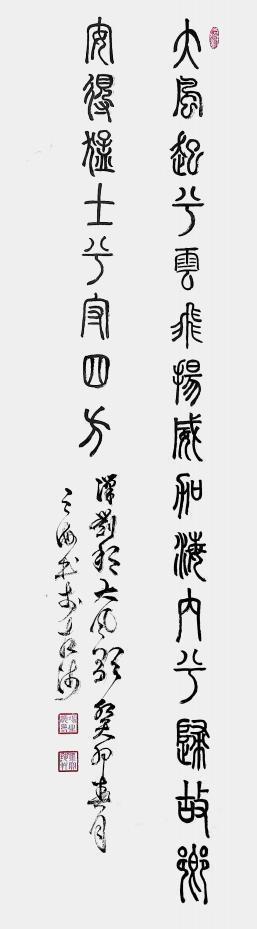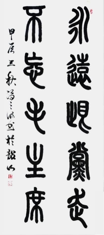 我认为书法应该以古为基,然后再谈创新,如果没有传统的功底为基础,那么所有的创新就是笑话,就像现在的丑书一样,毫无功底可言,毫无根基可言,毫无内涵可言,随心所欲地胡写乱画,是在亵渎书法艺术,也是在误导和扭曲书法艺术发展,尤其是在青少年的书法艺术的教育培训上,不利于青上年形成良好的书写习惯。因此一定要纠正这种现象,加强对书法艺术的传承,让书法回归正道,这样才能更好地创新。书法的创作也不能拘泥于旧制,囷囿于碑帖,一定要在用笔、用墨、用纸、内容上有所研索,有所创新,根据时代的不同、技术的发展,做出更好的选择,比如纸张是使用生宣还是熟宣,洒金还是烫金,多大的尺幅,什么样的墨汁,内容与时代的结合,内容与用途的结合,布局的构思等。除此之外还要兼顾时代的审美,东西方文化的融合,新时代的文化的传播,时代精神的弘扬,自我性格的彰显等。总之书法艺术不仅要有法度,还要有包容性、灵活性、趣味性等,既要表现出书法本体的各种要求和法度,又要表现出艺术性和创造性。那么如何才能既有法度又有创新呢?对此,我认为书法家要想做到这样,不能固步自封,闭门造车,要积极投入到丰富多彩的社会中去寻觅原创的契机,以自己的心性和智慧从奇山异水和风物人情中顿悟原创的灵感,使自己的艺术创作和社会发展的节律保持一致,这是书法家的最大的社会价值和艺术价值之所在。