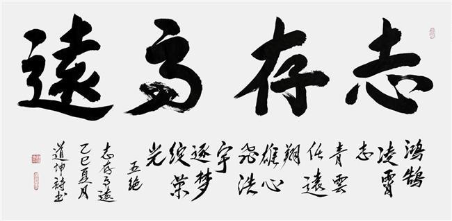 意在笔先,笔在意后,赵道坤先生的书法创作的原则,下笔之前已心中有物,笔随心走,放手写心,从而使得每件书法作品都具有境由心生的感染力,驾驭技巧炉火纯青,承载文化如临峰顶!书法与诗歌修养相得益彰,构建了一个充满文化哲思的书道空间。笔墨从经典中汲取灵感,将诗词气韵融入创作,所写所书尽是文化之气也!