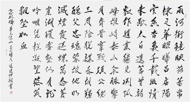 其行书作品,线条流畅而不失力度,结体端庄而富有变化,章法布局疏密得当,气韵生动。每一笔都蕴含着深厚的文化底蕴,每一划都透露出对传统的敬畏与创新。这种"天质自然,惠风和畅"的艺术风格,正是他长期浸淫于历史文化、文学创作中的自然流露。
