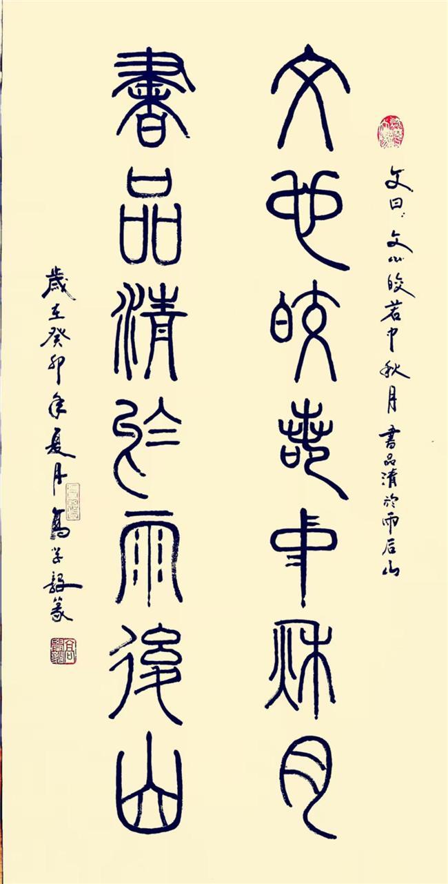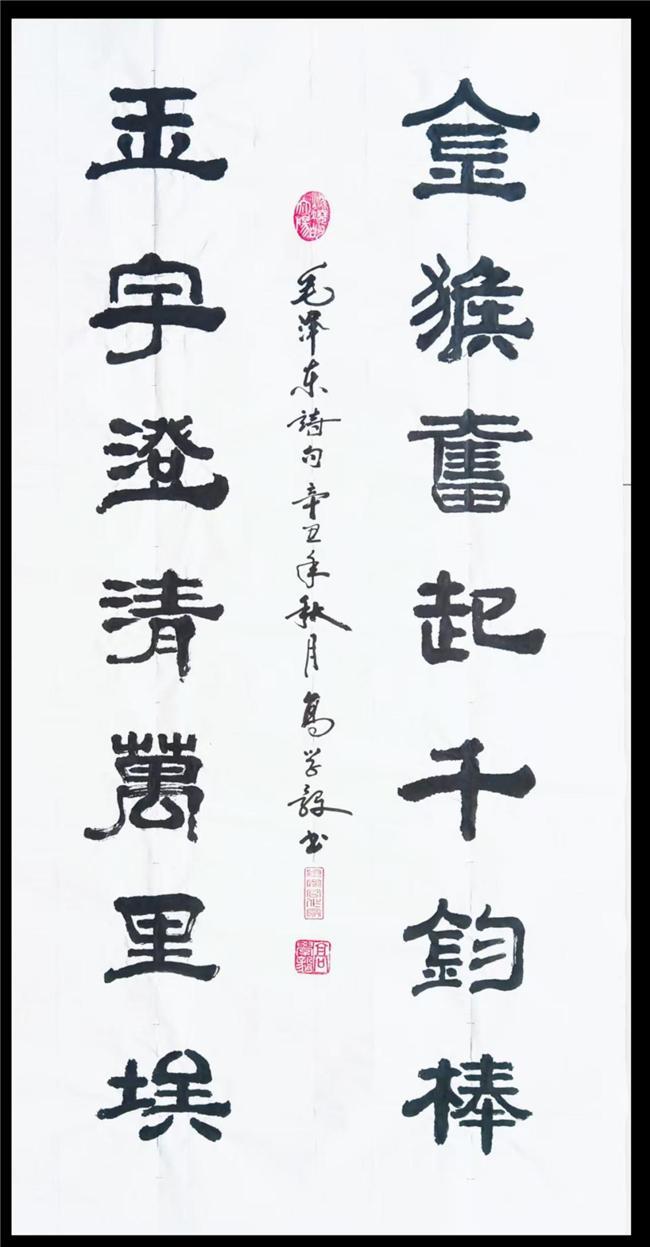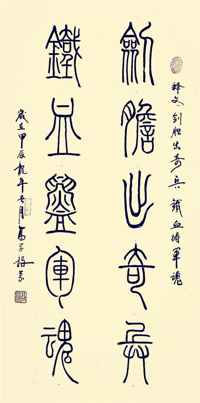 篆续秦碑渡金石,草随晋帖鉴古今。以秦篆为基构建端庄谨严的法度,以行草纵逸奔放抒发现代文人的情志旨趣,构建出既根植传统又面向当代的书法美学形态。从篆书的典雅刚劲到行草的磅礴婉转,每一件作品都是承载着深厚的传统文化基因,每一次挥毫实践也都是传统书法美学在当代文化体系中的精神再建。而其中所蕴涵的文化深度与美学价值,也早已是融入了书法文化复兴的滚滚洪流中,带着延续与创变活力砥砺前行,铸就非凡!