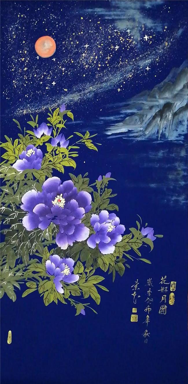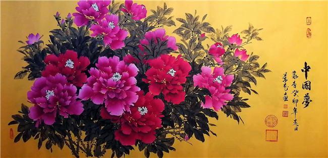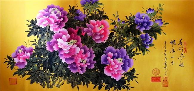 清新脱俗、富贵天香、花色大美的牡丹花成为聂兰花永恒演绎的经典,正应了“庭前芍药妖无格,池上芙蕖净少情。惟有牡丹真国色,花开时节动京城。”丰富的故事寓于画中,处处表现了花开时节的灿烂美好,洋溢着蓬勃的生命力和对生活的美好祝愿。